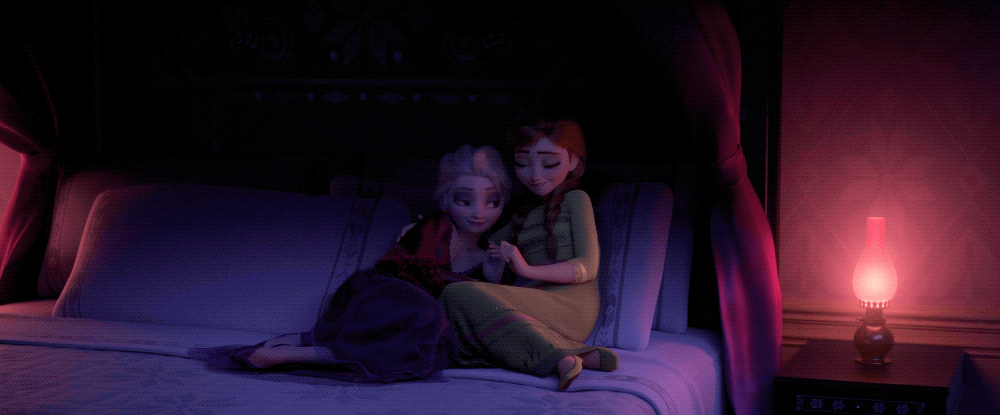 Cependant, la relation entre Elsa et Anna est, sans aucun doute, le point fort du film. On sent, pour les deux sœurs, l’envie de protéger l’une et l’autre, il y a plein de moments de tendresse, de câlins, et de complicité qui soudent leur relation. Anna tente de rassurer sa sœur et de rester près d’elle quand celle-ci se renferme (quand je vous dis que c’est un bon personnage). Alors, comme dans le premier film il n’y a pas de vrai méchant à proprement parler (alors oui Hans est vu comme le principal antagoniste du film mais en réalité c’est Elsa qui est à l’origine de l’élément perturbateur, des péripéties et qui contre les héros tandis que Hans ne fait que s’en servir à son avantage). Ici, ce n’est pas vraiment le cas, on découvre le véritable « antagoniste » à la fin du film mais les héros vivent plusieurs péripéties et se battent contre une nature hostile. Cela s’inscrit, depuis quelques années, dans la volonté de Disney de nuancer ses antagonistes. On peut le constater dans les derniers films Disney (et même dans les Pixars), avant les « méchants » étaient clairement identifiables dès le début, ils étaient l’élément perturbateur et les héros devaient réparer leurs fautes (ça pouvait de la méchante Reine dans Blanche Neige qui ordonne au chasseur de tuer cette dernière à Scar qui tue Mufasa, chasse Simba et le petit lionceau devenu grand doit reprendre sa place en tant que roi sur la terre des Lions). De plus en plus, les héros se battent contre quelque chose qui n’est pas identifiable et la révélation se trouve à la fin (c’est vraiment notable dans Vaiana/Moana par exemple), le méchant n’est pas celui que l’on croit (coucou Hans) ou les méchants ont de bonnes motivations mais n’ont pas la bonne méthode (petite référence à Big Hero 6…oui, je préfère le titre en anglais).